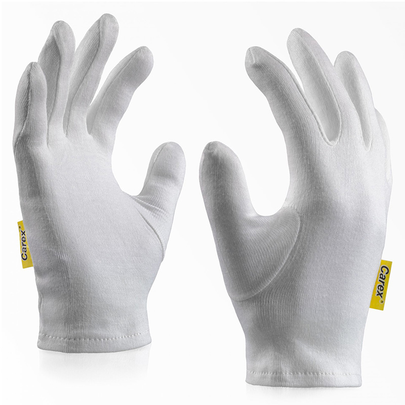 5-Finger-Baumwolltrikot-Handschuh, Seitendaumen, gesäumt, mittelschwere Qualität, fein gewirkt, Schichtel, Farbe: weiß, ca. 22 - 27 cm lang, nach Öko Tex Standard 100, Top-Pakistan-Qualität