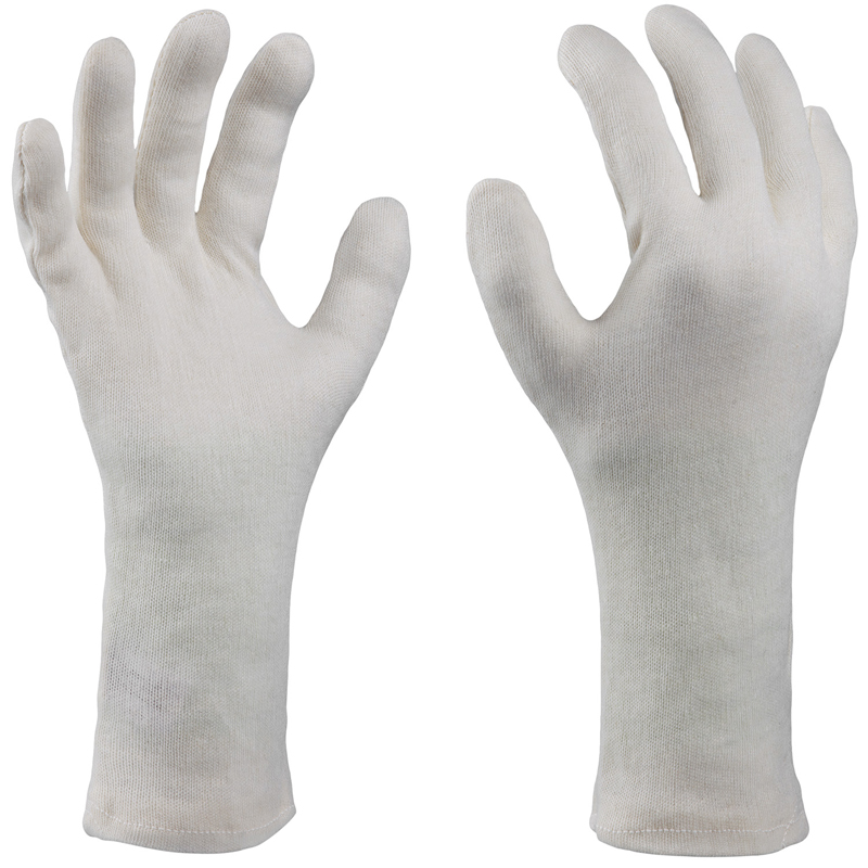 5-Finger-Baumwolltrikot-Handschuh, leichte Qualität, fein gewirkt, beidseitig tragbar, passt links und rechts, Seitendaumen, gesäumt, Gesamtlänge ca. 30 cm, Top-Qualität, nach OEKO-TEX® Standard 100