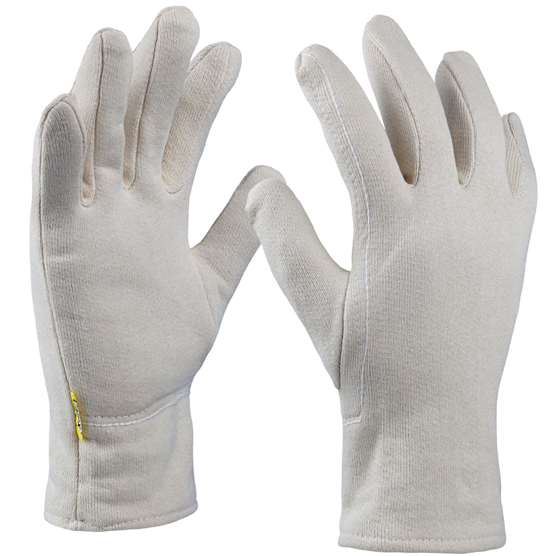 5-Finger-Baumwolljersey-Handschuh, doppelte Innenhand und doppelter Daumen, besonders schwere und flauschige Qualität, anatomischer Daumen, innen geraut, Schichtel, gesäumt, Länge ca. 24 - 27 cm, Top-Qualität, nach OEKO-TEX® Standard 100 (04.0.5363)