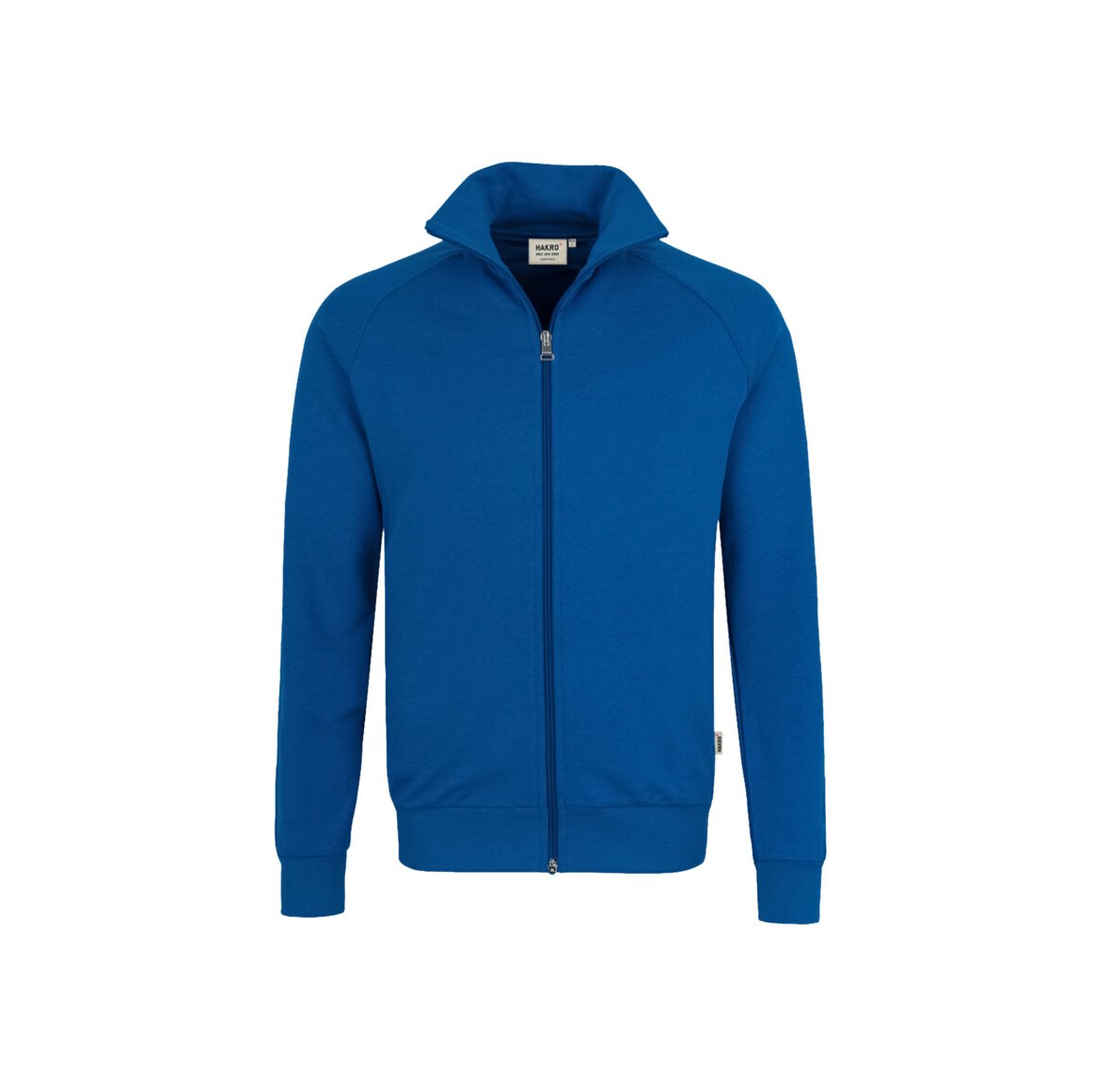 Sweatjacke im College-Stil mit Raglanärmeln, Kragen und Teilungsnähten mit Flatlock-Steppung. Hochwertiger Frontreißverschluss von YKK® und seitliche Einschubtaschen. Mittelschweres Sweatmaterial aus Baumwoll-Polyester-Mischung. Innenseite nicht angeraut (French Terry). Formstabile, LYCRA®-verstärkte Bündchen. Verfügbar auch als Damenmodell. Lockere Passform: Comfort Fit.