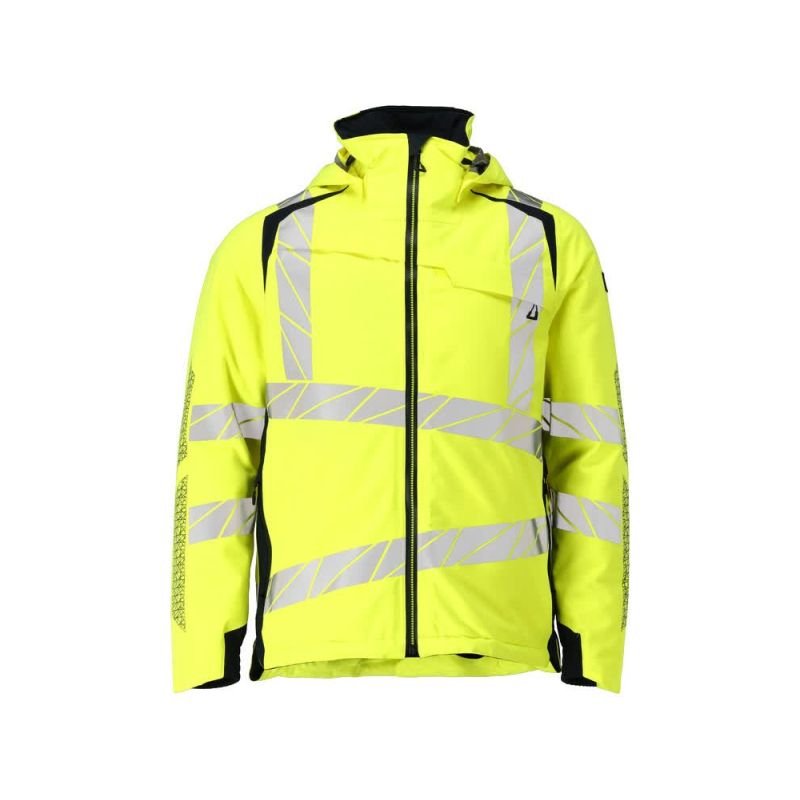 Fluoreszierend und mit Reflexschulterstreifen sowie schräg verlaufenden Reflexen. Ausgezeichnete atmungsaktive Eigenschaften sowie wind- und wasserdicht. Mit CLIMASCOT® Lightweight Insulation. Zweifarbig. Nähte sind verklebt. Kapuze ist abnehmbar, gefüttert und mit verstellbaren Elastikschnüren versehen. Verschluss mit Reißverschluss und doppelter Wetterschutzleiste. Innentaschen - zwei mit Reißverschluss sowie eine offene aus Netzmaterial. ID-Kartenhalter ist abnehmbar. Brusttasche mit wasserdichtem Reißverschluss. Vordertaschen mit wasserdichten Reißverschlüssen. Stehkragen. Rippenbund an vorderen, unteren Innenseite des Saumes. Verlängerbarer Rücken durch Aufknöpfen zum besseren Schutz vor Wind und Wetter. Gummizug an den Handgelenken. Reißverschluss im Futter am Rücken zum Anbringen eines Logos/einer Stickerei. Mit Druckeffekten. OEKO-TEX® STANDARD 100. EN ISO 20471 - Klasse 3. Hi-Vis Gruppe A. EN 342 3/WP (2,01 clo). EN 343 4-1-X Das Produkt ist zertifiziert, dass dieses mit einem Logo von 0,0300m² versehen werden darf. Dieses zulässige Areal darf nicht überschritten werden. Das Logo auf der Vorder- und Rückseite darf jeweils maximal 50% des gesamten Logoareals betragen, um die Zertifizierung gemäß EN ISO 20471 beizubehalten. Hinweis: Der aufgeführte Bereich ist lediglich ein Leitfaden dazu, wie viel Platz für die Logoplatzierung zur Verfügung steht. Um die Hi-Vis-Klasse des Produkts gemäß EN ISO 20471 beizubehalten, müssen die Anweisungen zur Logogröße eingehalten werden.
