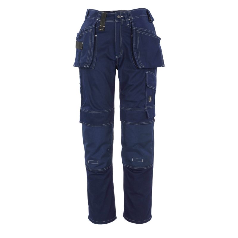 Zweifache und dreifache Kappnähte an den Beinen und im Schritt. Niedrige Taille und formgeschnittener Bund. Hosenbeine sind ergonomisch geformt. Gürtelschlaufen. D-Ring. Hosenschlitz mit Reißverschluss. Werkzeugschlaufe am Bund. Hängetaschen mit Verstärkungen, extra Taschen und Werkzeugschlaufen. Schlitz zum Verstauen der Hängetaschen. Vordertaschen. Gesäßtaschen mit Verstärkungen und Patte mit Klettverschluss. Hammerschlaufen, verstellbar. Schenkeltasche mit Handyfach, Patte und Klettverschluss. Mit CORDURA®-Gewebe verstärkter Zollstock- und kleiner Aussentasche. Stifttasche. Knöpfe zum Anbringen von Messern. Knietaschen aus super strapazierfähigem CORDURA® (1000 D), höhenregulierbar und mit Patte sowie Eingriff von oben. Kontrastnähte. Reflexeffekte. OEKO-TEX® STANDARD 100