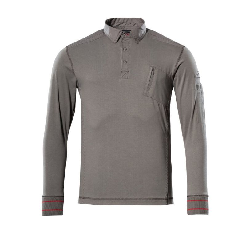 Premium. Gekämmte Baumwolle. Moderne Passform. Leinenkragen. Knopfleiste. Besatz an verschiedenen Stellen des Produktes. Handy-Brusttasche mit Reißverschluss. Rippenbündchen an den Handgelenken. Kontraste (rote), diskret an verschiedenen Stellen des Produktes platziert. OEKO-TEX® STANDARD 100