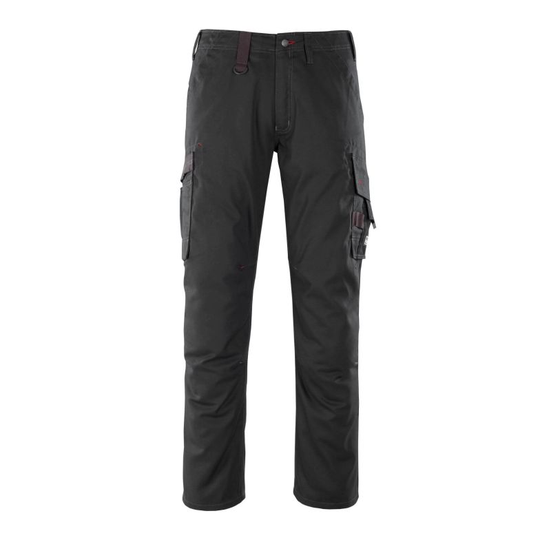 Zweifache und dreifache Kappnähte an den Beinen und im Schritt. Niedrige Taille und formgeschnittener Bund. Hosenbeine sind ergonomisch geformt. Gürtelschlaufen. Hosenschlitz mit Reißverschluss. Vordertaschen. D-Ring. Gesäßtaschen, eine mit Patte und Klettverschluss und eine mit verdecktem Reißverschluss. Schenkeltaschen, eine mit Patte und Klettverschluss und eine mit verdecktem Reißverschluss. Handy-Schenkeltasche mit Patte und verstellbarem Klettverschluss. Kontraste (rote), diskret an verschiedenen Stellen des Produktes platziert. Reflexeffekte. OEKO-TEX® STANDARD 100