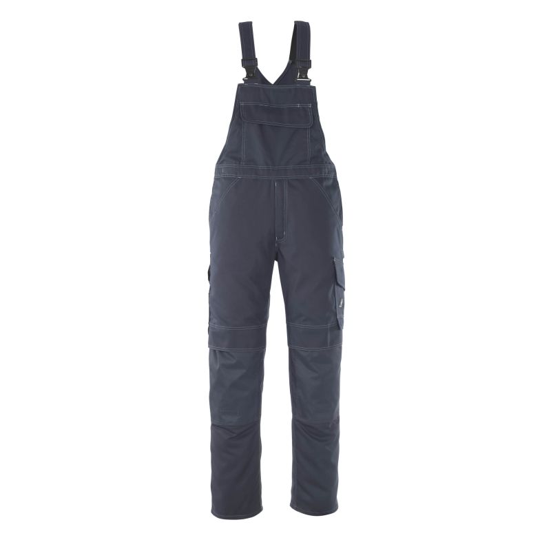 Leichte Meterware. Dreifache Kappnähte an den Beinen und im Schritt. Schulterträger aus Stoff, verstellbar und mit kurzem, kräftigem Gummizug sowie Kunststoffschnallen. Latztasche mit Stiftfach und Patte mit verdeckten Druckknöpfen. D-Ring. Innentasche mit Klettverschluss. Bund ist regulierbar. Hosenbeine sind ergonomisch geformt. Vordertaschen. Hosenschlitz mit Reißverschluss. Verstärkte Gesässtaschen. Hammerschlaufe, verstellbar. Schenkeltasche mit Patte und verdeckten Druckknöpfen. Zollstocktasche. Knietaschen aus Polyester, höhenregulierbar und mit Patte sowie Eingriff von oben. Kontrastnähte. Reflexeffekte. Zertifiziert zusammen mit Kniepolstertyp large gemäß EN 14404-3. OEKO-TEX® STANDARD 100. ProWash® - EN ISO 15797
