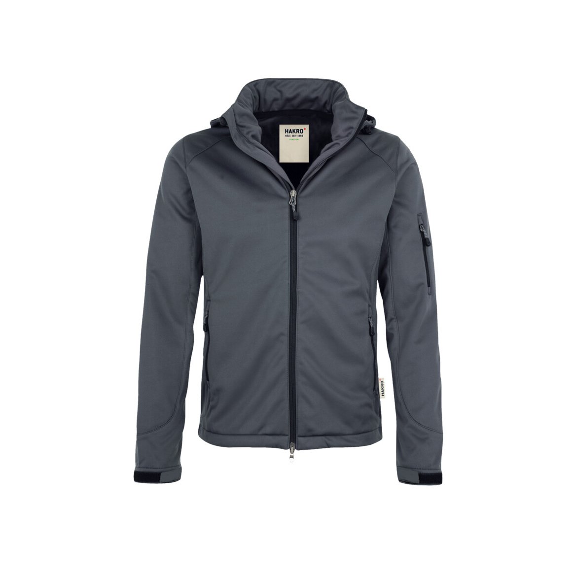 Wärmende, atmungsaktive und strapazierfähige Softshelljacke mit wasser- und winddichtem Softshell-Obermaterial. Mit Druckknöpfen abnehmbare Kapuze mit Zweinahtverarbeitung. Verlängertes, abgerundetes Rückenteil. Weitenverstellbarer Saumabschluss mit Tunnelkordelzug und Stoppern. Weitenverstellbare Ärmelbündchen mit Klettband zum stufenlosen Regulieren. Hochwertiger 2-Wege-Frontreißverschluss mit innenliegender Windschutzpatte und Reißverschlussgarage, Reißverschlusstasche am linken Ärmel und seitliche Reißverschlusstaschen. Alle Reißverschlüsse von YKK® in Schwarz mit reversiblen, schwarzen Reißverschlussanhängern. Dehnfähiges Softshellmaterial für exzellente Bewegungsfreiheit aus Interlock-3-Lagen-Laminat mit TRIACTIVE PRO Technologie: eine wasser- und winddichte Membranee, die gleichzeitig atmungsaktiv ist. Leichtes Microfleece an der Innenseite. Verfügbar auch als Damenmodell. Normale Passform: Regular Fit.
