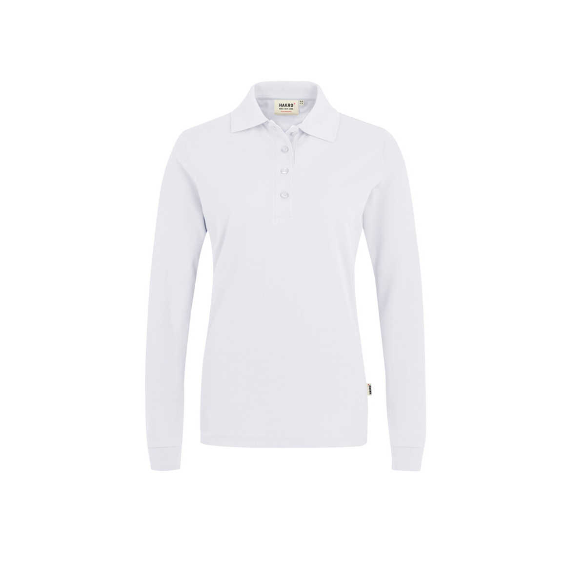 Besonders strapazierfähiges Langarm-Poloshirt mit Vier-Loch-Knopfleiste. Knöpfe Ton in Ton, Nackenband und doppelt geriegelte Seitenschlitze. Formstabile, LYCRA®-verstärkte Rippstrickbündchen. Leasingkoller zur einfachen Kennzeichnung in der gewerblichen Wäscherei und Aufhängebänder im Saum. Feinmaschiges, besonders pflegeleichtes und funktionelles Piqué aus MIKRALINAR®, dem HAKRO Performance-Materialmix aus Baumwolle und Polyester. Verfügbar auch als Herren-/Unisexmodell mit Drei-Loch-Knopfleiste. Normale Passform: Regular Fit.